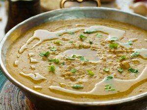 Daal Chawal Platter with Crispy baingan, Chana daal & Keri Tamatar Chutney