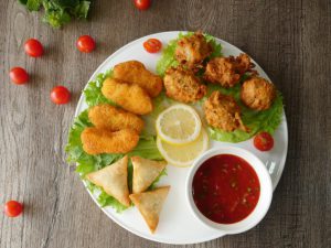 Bowl mein pyaz,tamatar,shimla mirch,hara dhania,onion powder,namak,zeera powder,lemon juice aur national tomato ketchup dal ker ache tarhan whisk ker lein.