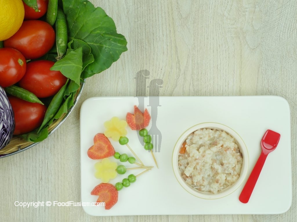 In pot,add rice,yellow lentil gram,carrot,oil and water,bring it to boil,cover & steam cook until desired consistency (15-20 minutes).