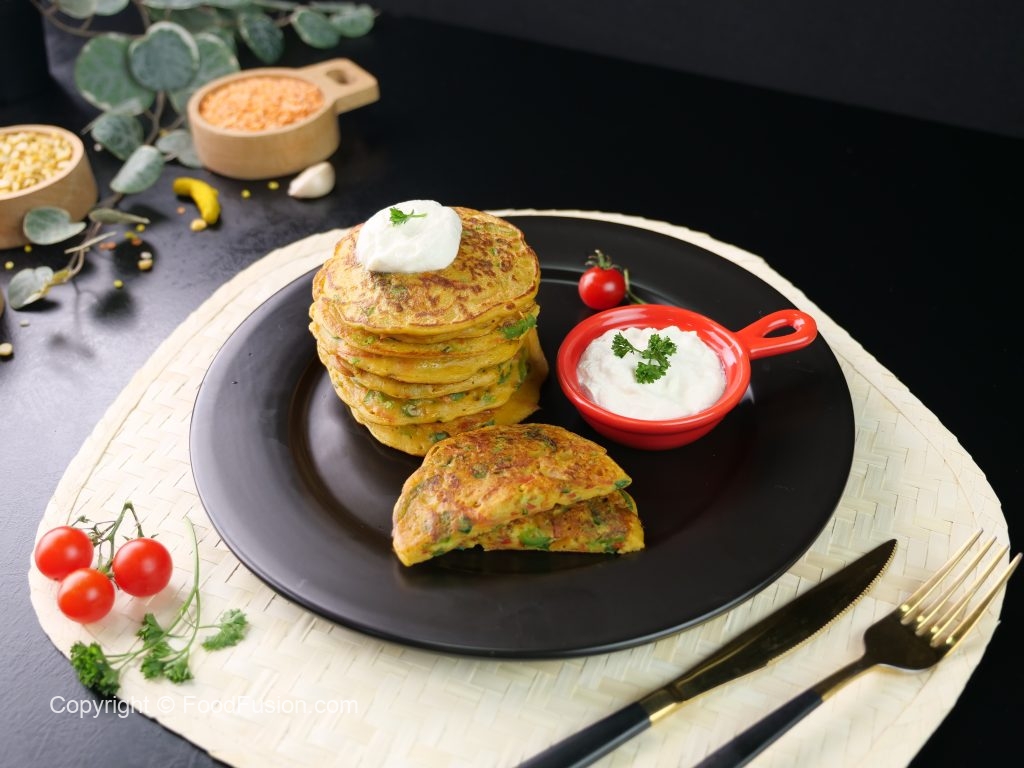 -Greased frying pan mein ¼ cup batter dal dein aur halki ancch per 2 minute kliya paka lein phir flip karein aur dosri side ko paka lein (makes 9-10).