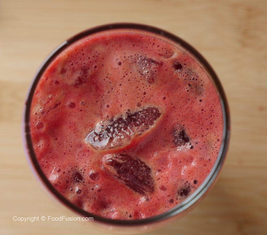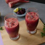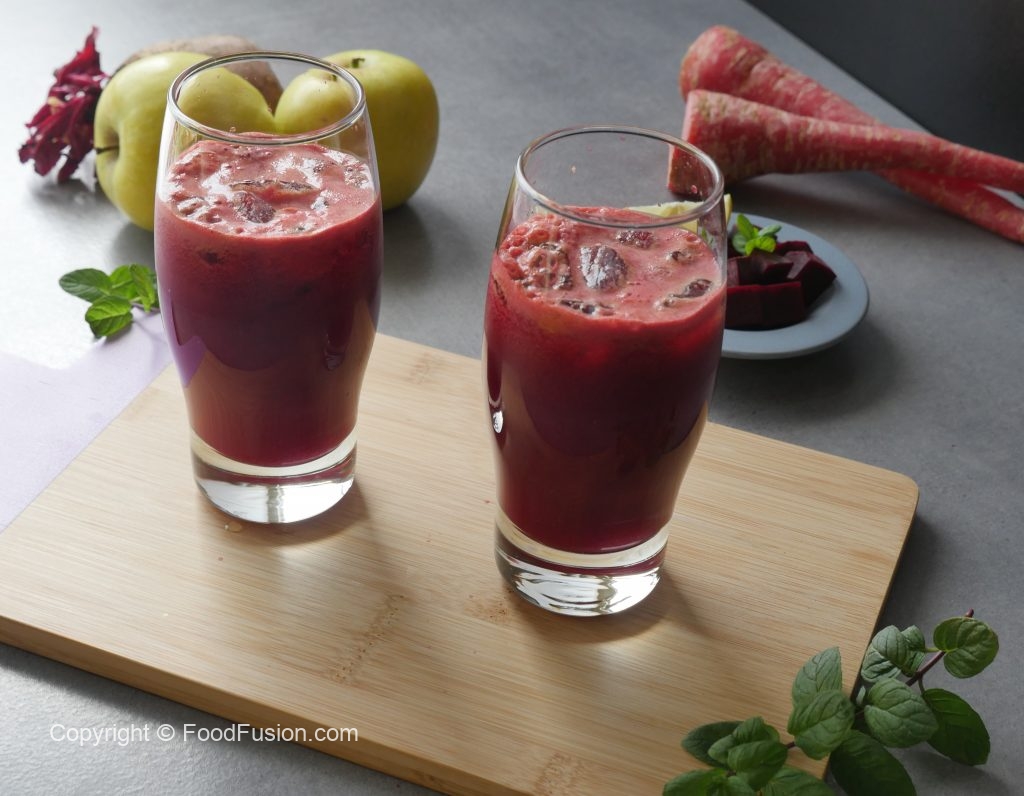 Juicer machine mein saib,chukandar,gajar aur adrak dal ker juice nikal lein.