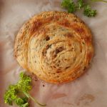 Gently press karein aur baking tray per butter paper laga ker rakh dein aur fork ki madad sa prick ker lein aur brush ki madad sa doodh laga lein (makes 3).