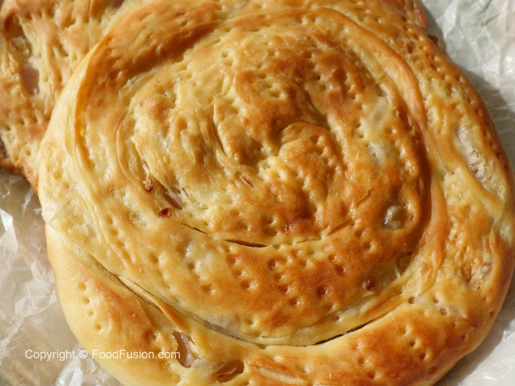 Pyaz filling dal ker pheela lein aur swiss roll ki tarhan roll ker lein.