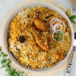 In a bowl,fried onion,tomato,green chilies,dried plums,mint leaves,fresh coriander,briyani masala, lemon juice,mix well & set aside.