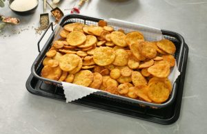 -In a wok,heat cooking oil (150°C) & fry on low flame until golden brown & crispy.