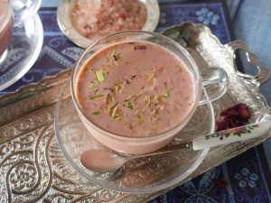 -Add cumin seeds,chaat masala,black salt,dried ginger powder,purple food color,mix well & cook on low flame for a minute then strain.