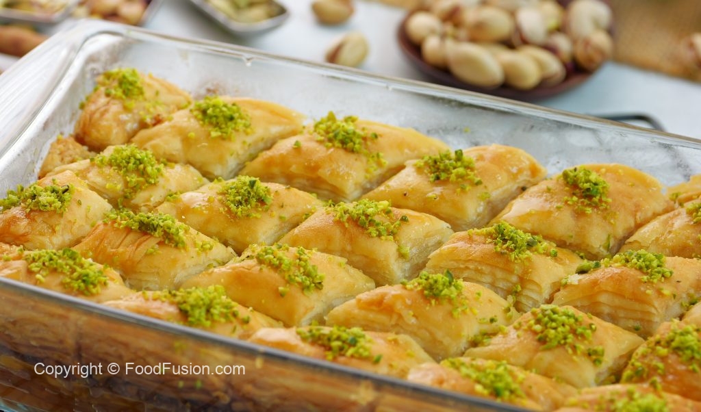 Golden, crispy layers of handmade phyllo, filled with a rich nutty mixture and soaked in fragrant syrup. Every bite melts in your mouth, balancing crunch and sweetness to perfection. Baklava bliss, made from scratch! #happycookingtoyou #foodfusion #araywahh #monthofgood