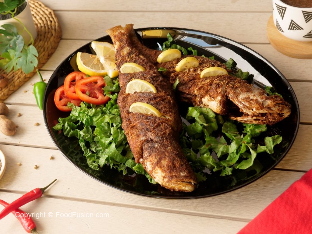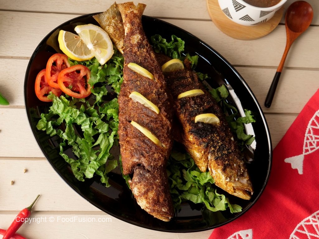 In a wok,heat cooking oil and fry fish on low flame from both sides until golden brown & crispy.