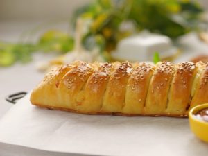 -Place the braided bread on a baking tray lined with butter paper.