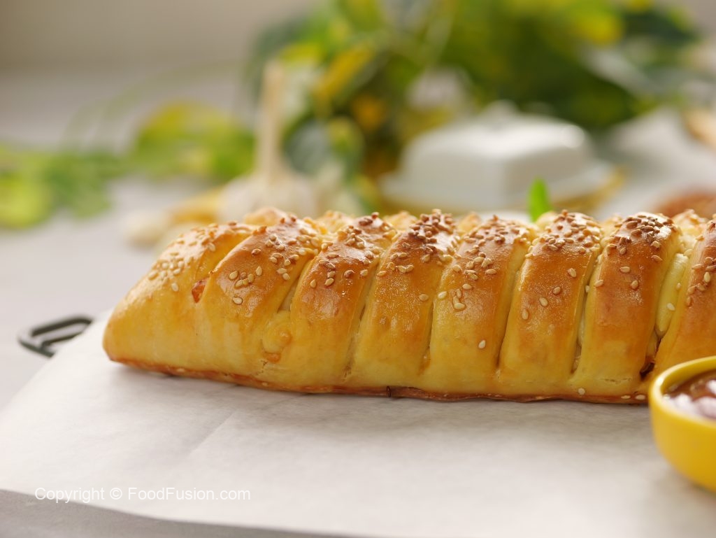 Make the best BBQ Chicken Bread with this foolproof recipe! Soft bread, juicy & smoky chicken filling, and an easy technique for mastering the braid! Try this beautifully woven bread at home and enjoy it with your loved ones! #happycookingtoyou #foodfusion #digitalammi #nurpurbutter