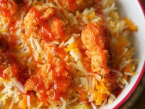 -Frying pan mein cooking oil aur chicken dal ker ache tarhan mix karein aur darmiyani ancch per 8-10 minutes kliya paka lein phir tez ancch per sukh janay tak paka lein.