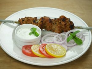 In ¾ cup oil saute sliced onion until soft and pink. Grind sauteed onion with yogurt and set aside.