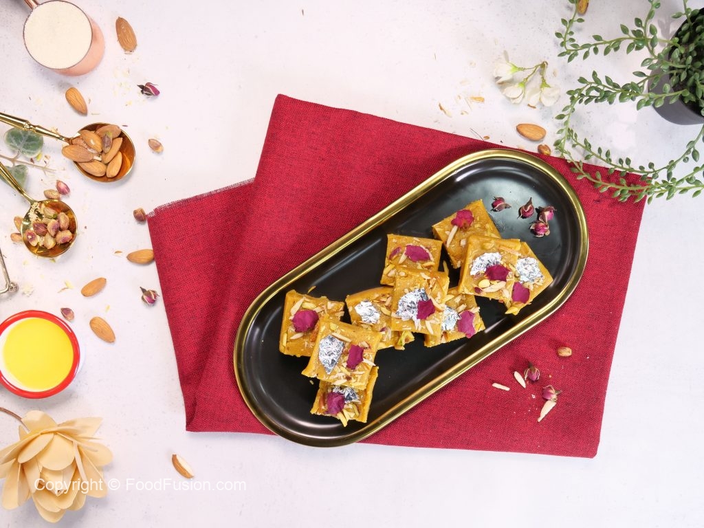 Besan Barfi – the go to mithai for any celebration. Try this recipe to give you the best homemade, melt-in-mouth Besan Barfi, and treat yourself and your family to this amazing, traditional delight! Made with Olper’s Tarrka, it’ll be a dish no one can keep their hands away from! #happycookingtoyou #foodfusion #digitalammi #olperstarrka #olpers