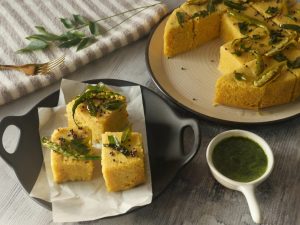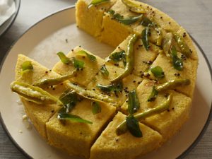 Square pieces mein cut ker lein aur dhokla per tadka dal ker serve karein.