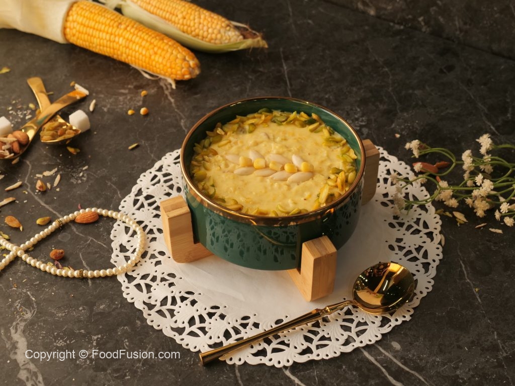 Badam,corn kernels aur pista sa garnish ker lein & thanda serve karein!
