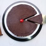 -Place another layer of cake,add sugar syrup,add prepared chocolate frosting & cover the sides of the cake with frosting.