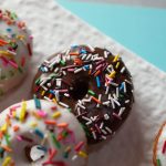 -Dip one side of doughnuts in melted chocolate & place it on wire rack to allow excess melted chocolate to drip off.