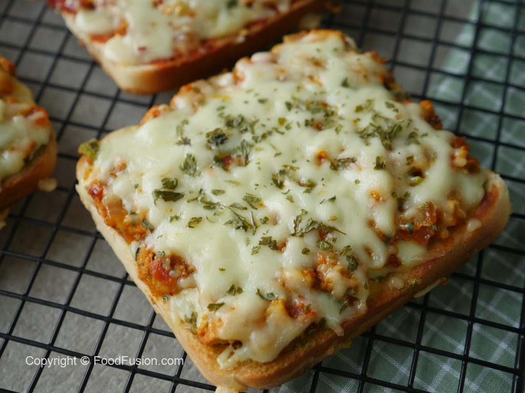 Grease frying pan with cooking oil and toast bread slices from both sides then turn off the flame.