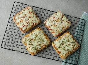 Hari chutney dal ker pheela lein,cheddar cheese,cooked chicken mixture,mozzarella cheese aur dried parsley dal ker chulha on karein aur dhak ker halki ancch per cheese melt hunay tak paka lein (approx. 2-3 minutes) & serve karein!