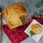In a baking dish,add & spread prepared white sauce,bread slices,prepared vegetable sauce,white sauce, cheddar cheese,mozzarella cheese,bread slices,red sauce,white sauce,cheddar cheese,mozzarella cheese,bread slices,pour prepared egg mixture,cheddar cheese & mozzarella cheese.