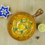 In a wok, add butter and oil (oil is added so that butter doesn’t get burned) heat it, add bay leaves and onion and sauté until onion are translucent.