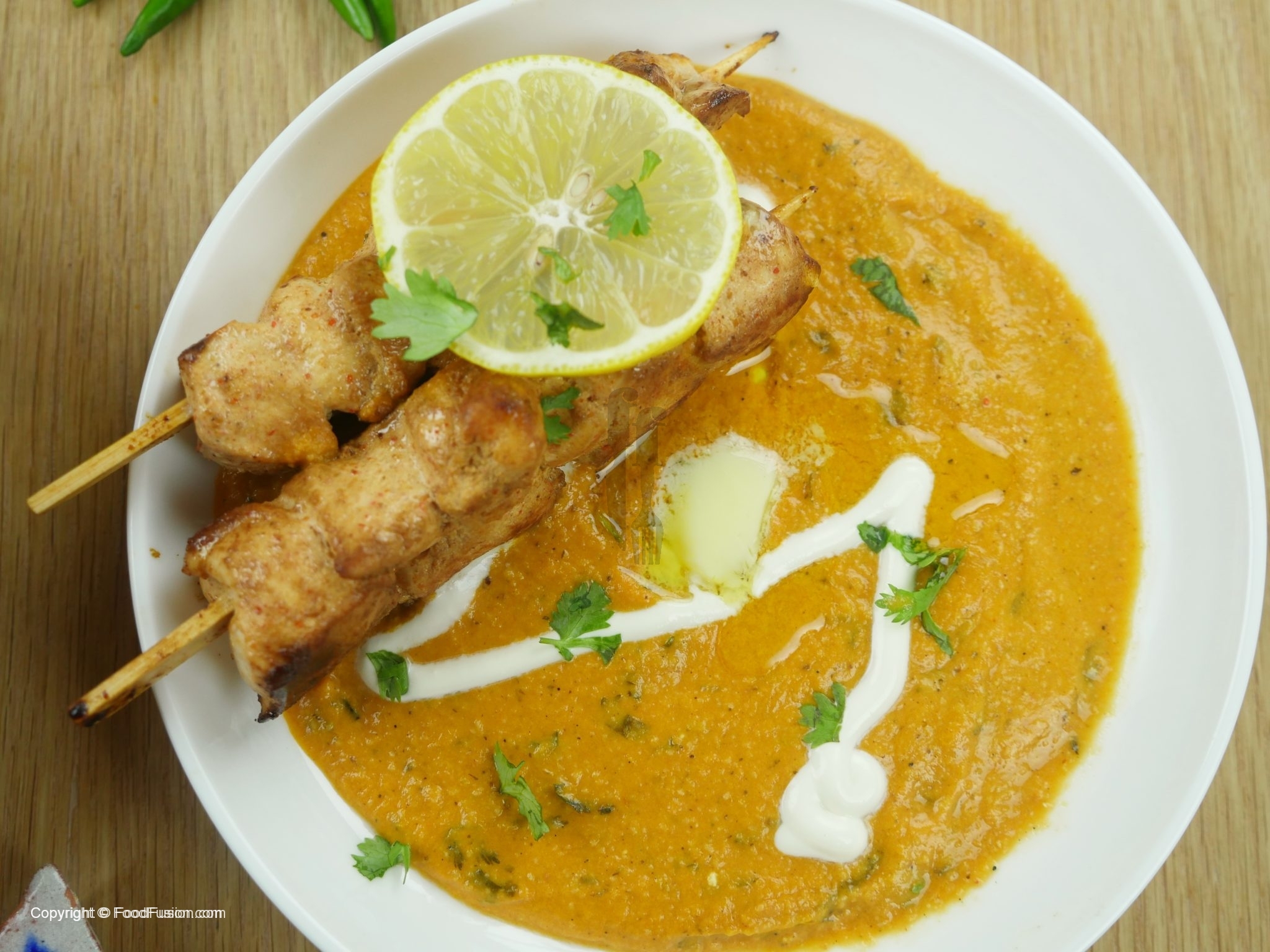 If you don’t want to add chicken on skewers, directly shallow fry the chicken and add to the gravy.