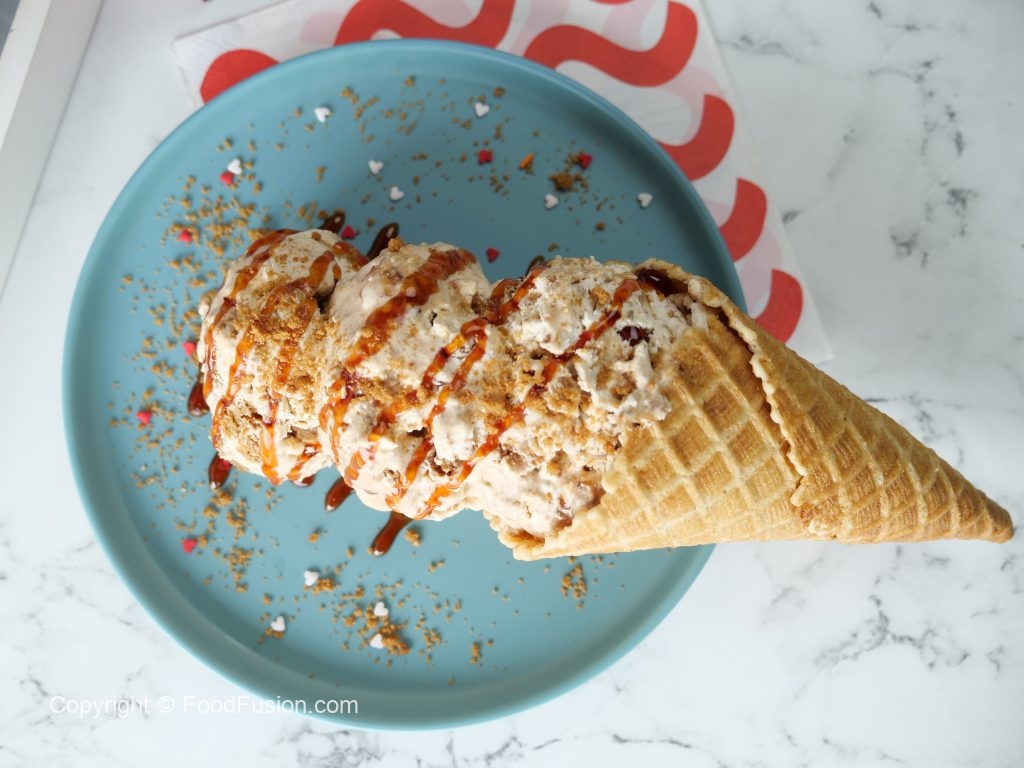 -Once frozen completely,scoop out,drizzle caramel syrup,add crumbled candi biscuits & serve!