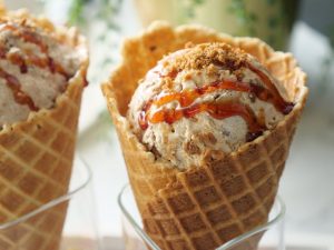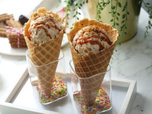 -Jab freeze ho jaye tou scoop nikal lein,caramel sauce aur crumbled candi biscuit dal ker serve karein!