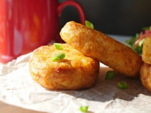 -In a wok,heat cooking oil & fry on medium flame until golden & crispy (makes 7-8).
