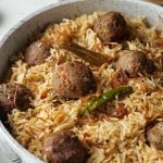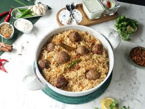 -Add fried chapli koftay,green chillies,fresh coriander & fried onion,cover with aluminum foil & seal with lid and cook on high flame for 2-3 minutes to build up steam then steam cook on low flame for 12-15 minutes.