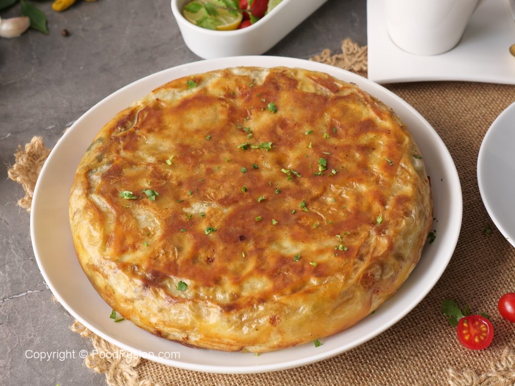 Ab tawa ko remove ker lein,frying pan mein cooking oil dal ker chatti pathiri ki dosri side ko frying pan mein dal dein aur halki ancch per 4-5 minutes kliya paka lein.