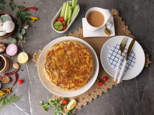 Rubber spatula ki madad sa sides ko scrap karein aur flat plate per carefully flip ker lein & side per rakh dein.