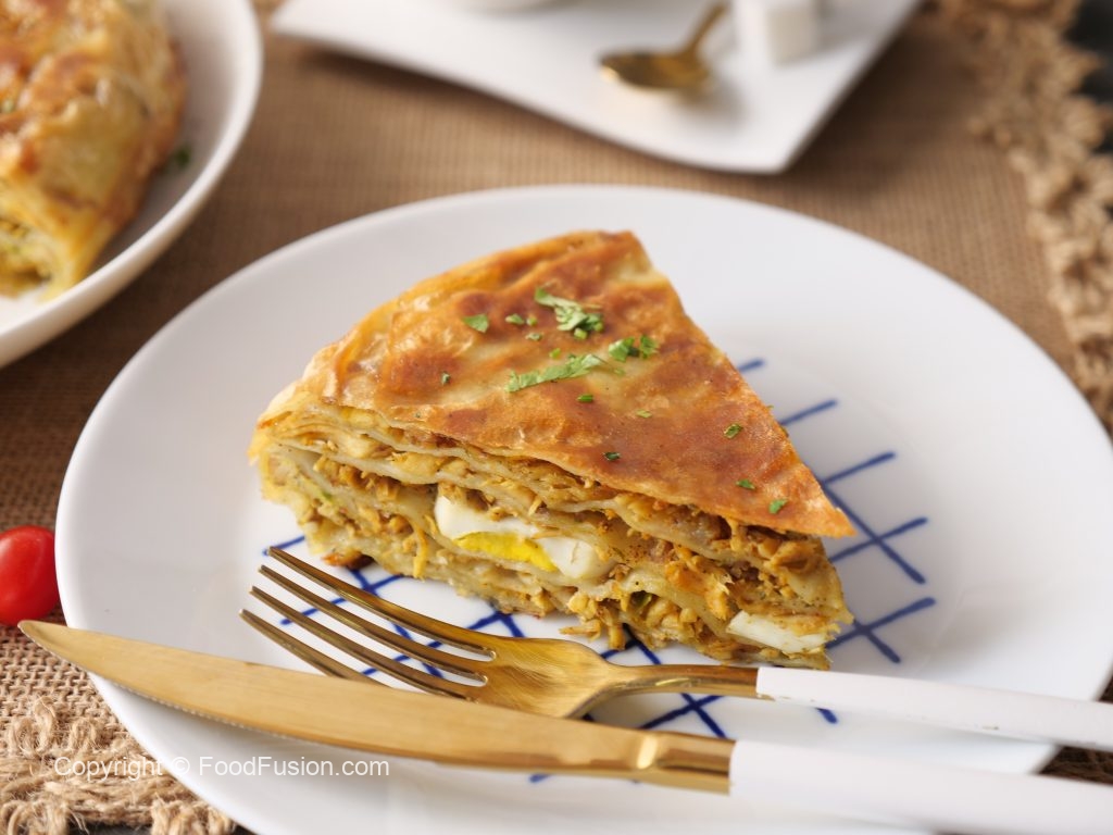 Is he tarhan baqi roll/samosa patti ki layers laga lein aur edges ko fold ker ka set ker lein (repeat 4 layers).