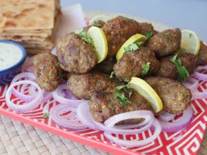 -In a bowl,add beef mince,ginger garlic paste,pink salt,paprika powder,black pepper powder,cumin powder,breadcrumbs,egg,fresh coriander & mix until well combined & marinate for 30 minutes.