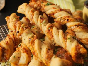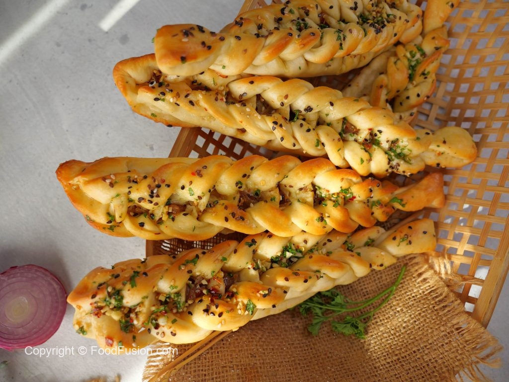 -Braided dough ko greased aur baking paper lined tray mein rakhein.
