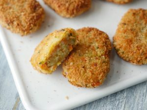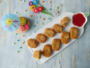 Grease hands with oil,take a mixture and make a nuggets shape (makes 18-20).