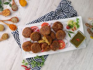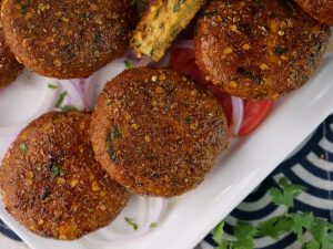-Grease hands with oil,take a small quantity of mixture (60g) & make a kababs of equal sizes.