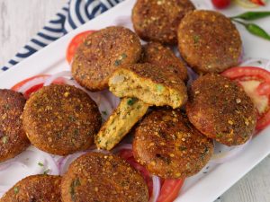 -Frying pan mein cooking oil garam karein aur kabab ko dono sides sa golden-brown ho janay tak fry ker lein (makes 15).