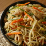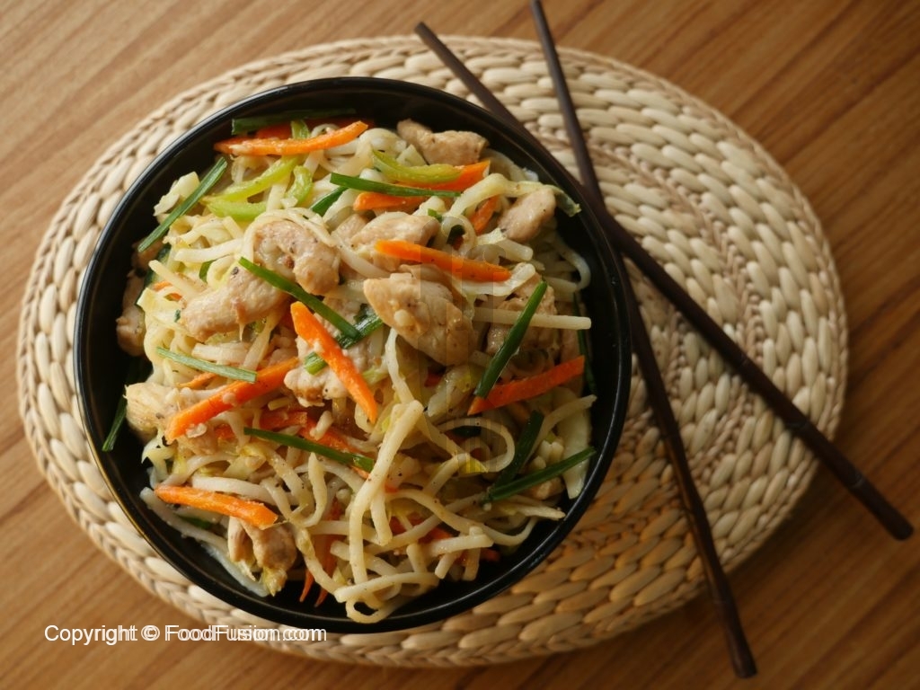 Add chow mein or egg noodles,chicken stock,salt,green onion and stir-fry for 2-3 minutes on high flame.