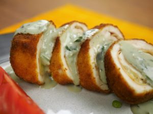 Cut the breasts from middle and flatten them using plastic wrap. Make sure it shouldn’t be flatten too much which break the tissues.