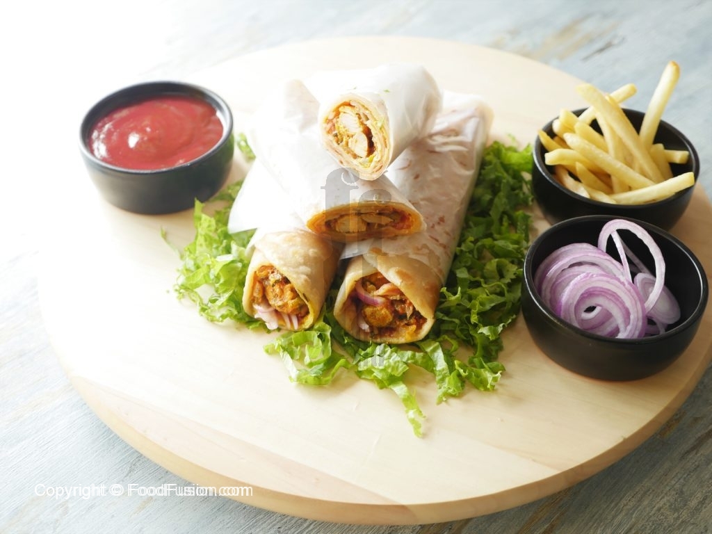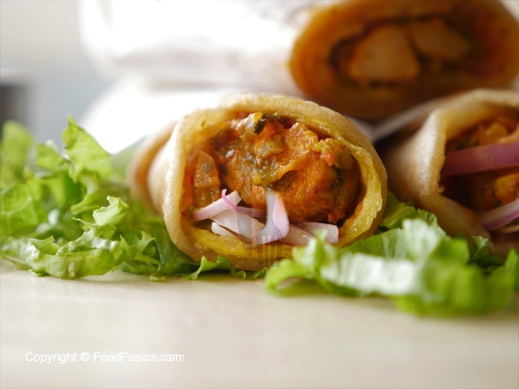 On paratha,add tomato ketchup,onions soaked in lemon juice,cooked chicken,wrap & serve.