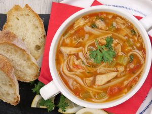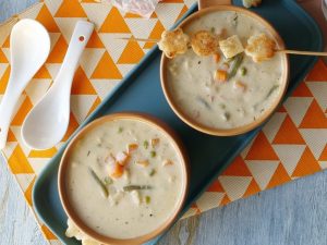 -Take chicken mixture (1 tbs) & add in broth,cover & cook on medium flame for 5-6 minutes (makes 10-12).