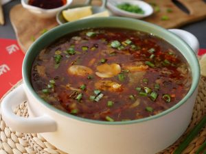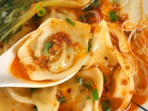 -Serving bowl mein wonton soup daal kar upar se bok choy leaves, chilli oil, spring onion leaves aur fried garlic daal kar serve karein.