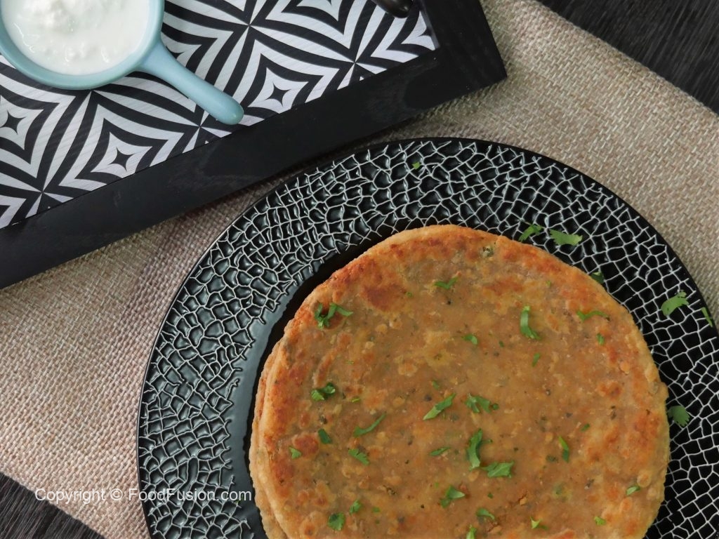 Ab dough ball ko hath se round spread karlen aur parathe ko garam griddle pe oil laga kar fry karlen.