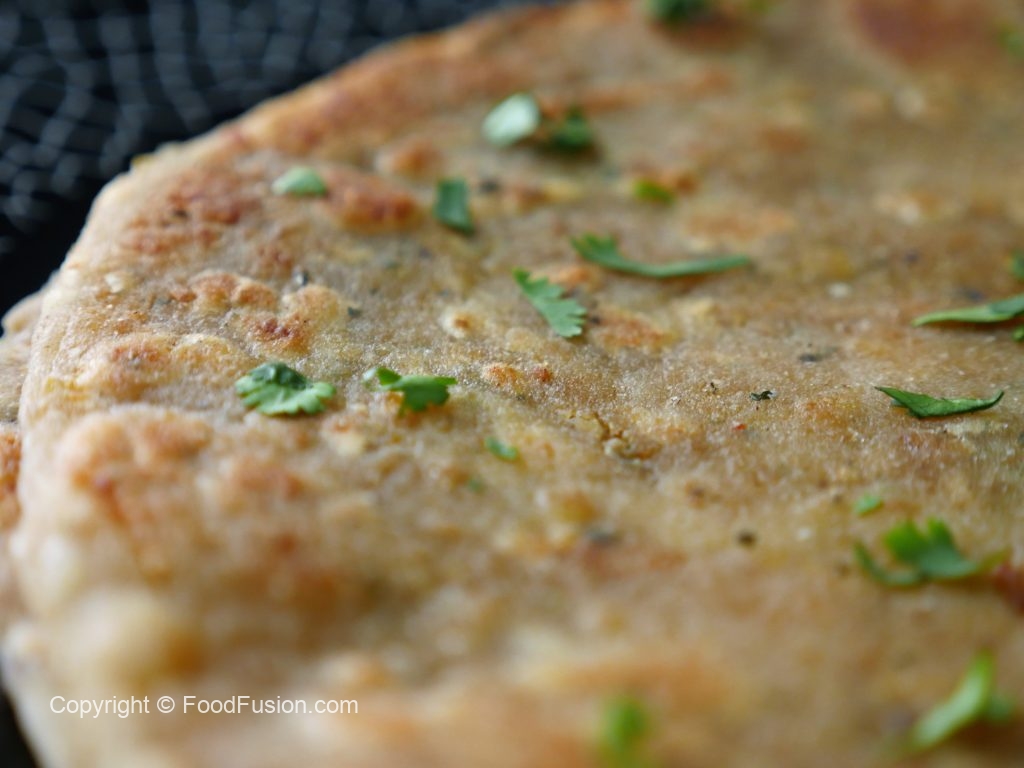 Flatten a dough ball with the help of hands and fry it in heated griddle until cooked from both the sides.