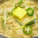 Garnish with ginger,green chilies and butter.