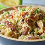 Add cooked chicken and mix well.