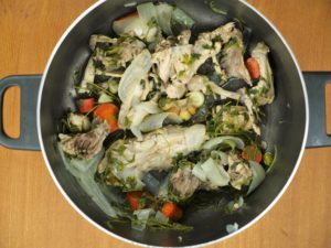 -In a pan, add oil, steamed chicken & pan sear on medium flame until golden brown from both sides.