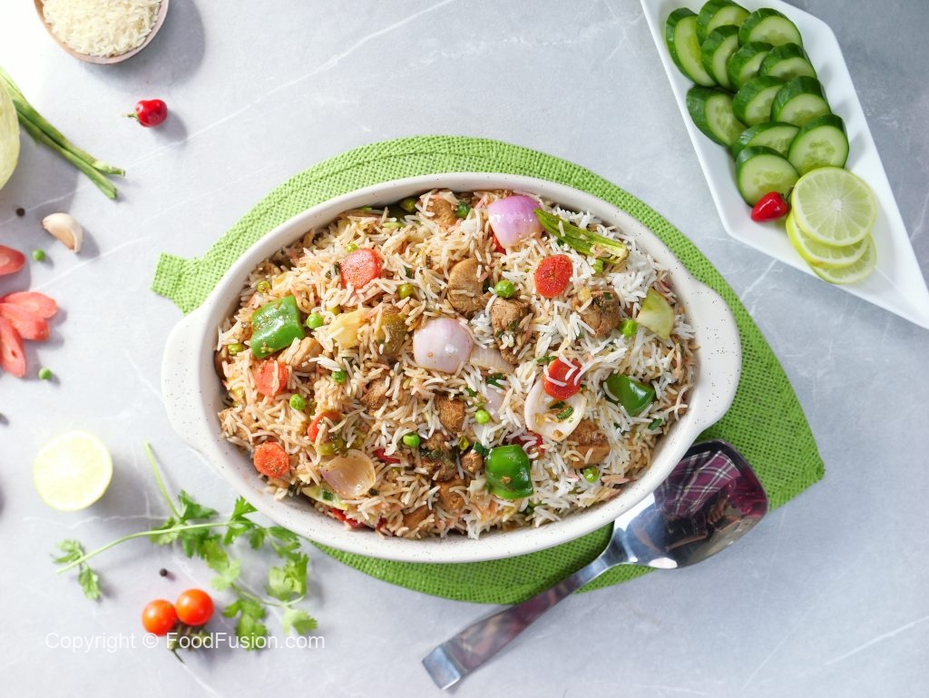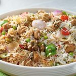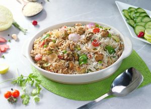 -Boiled rice ki half quantity,chilli sauce,green chilli sauce,soy sauce,chicken & veg gravy,remaining boiled rice,hara pyaz leaves aur cooking oil dal ker dhak dein aur halki ancch per 8-10 minutes kliya paka lein & serve karein!