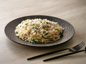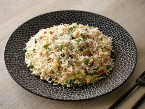 Tray per boiled chawal dal ker pheela lein aur thanda ker lein & side per rakh dein.